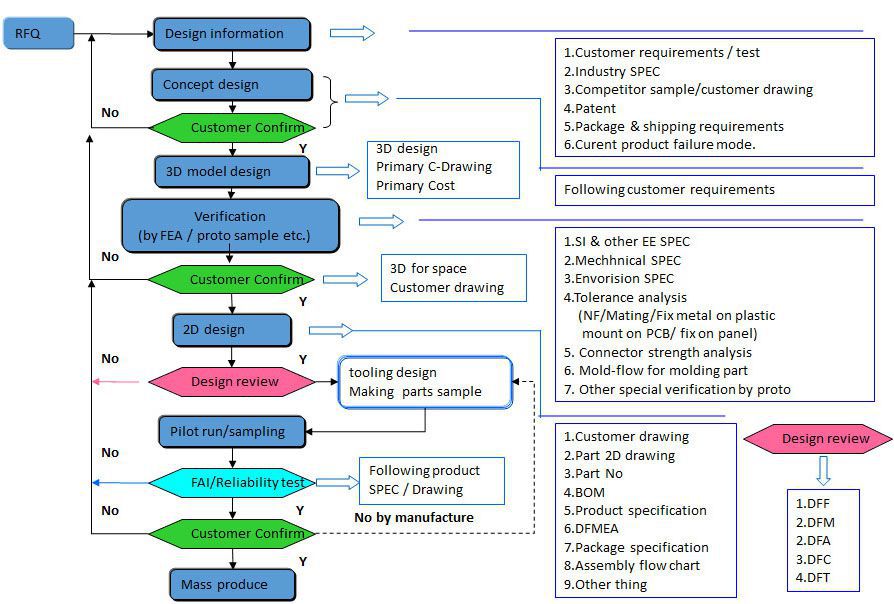 為保證產(chǎn)品開發(fā)的時效,品質(zhì),公司建立了完善的產(chǎn)品開發(fā)流程,使產(chǎn)品從設計導入開始,到產(chǎn)品設計驗證完成量產(chǎn)的整個過程都處于掌控之中,從而為滿足客戶產(chǎn)品性能要求,降低產(chǎn)品制造成本,保證產(chǎn)品制造質(zhì)量,縮短產(chǎn)品開發(fā)周期,奠定了必要的流程基礎。
