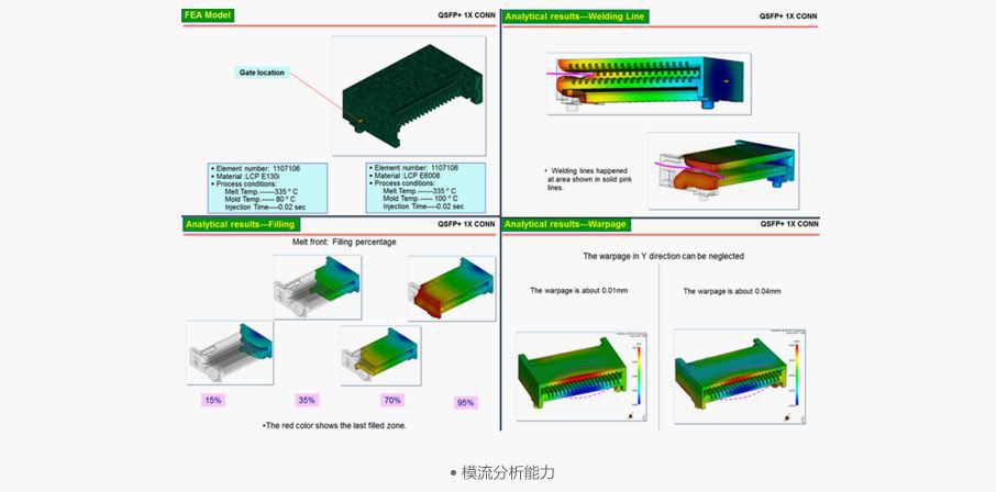 公司具備連接器研發(fā)之CAE工程分析能力, 如結(jié)構(gòu)分析,模流分析,信號完整性分析,熱分析等。在產(chǎn)品的研發(fā)過程中,即可確定產(chǎn)品的性能,產(chǎn)品的制造性等。從而節(jié)約產(chǎn)品研發(fā)成本,縮短產(chǎn)品研發(fā)周期,提高產(chǎn)品設計質(zhì)量。
