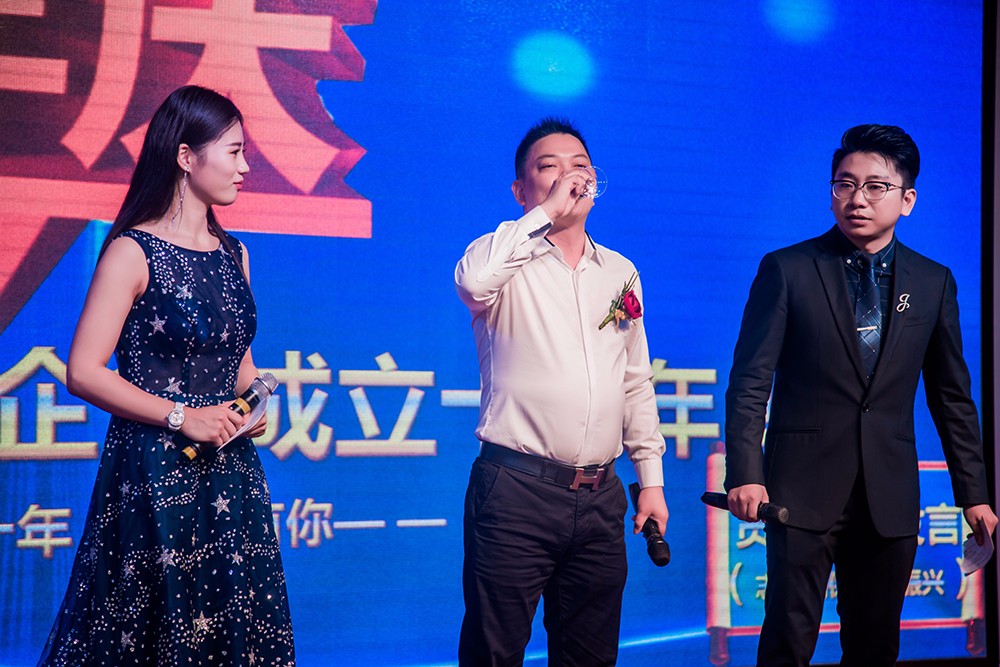 在所有表彰結(jié)束后,主持人邀請茅總登臺宣布“卓倫企業(yè)十歲了”,在全場的掌聲中,大家高舉酒杯祝賀“卓倫企業(yè)成立十周年!”,慶典活動正式開始。