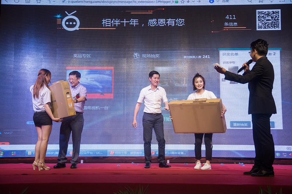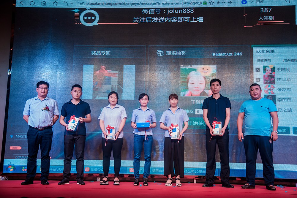 慶典文藝活動十分精彩,現(xiàn)場晚會高潮不斷,公司內(nèi)部集體舞《玖月奇跡-踩踩踩》散發(fā)出朝氣、活力與激情;搖滾嗨歌,不斷的點(diǎn)燃全場的激情;平衡術(shù)讓現(xiàn)場觀眾屏息觀察,感受平衡術(shù)之神奇。同時現(xiàn)場還有各類小游戲穿插,小禮物與紅包競猜不斷,精彩迭起,一次次把晚會推向高潮。令人興奮不已的抽獎活動更是貫穿始終,公司為答謝各位領(lǐng)導(dǎo)和職工們的辛勤付出準(zhǔn)備了非常豐富的獎品,由50個幸運(yùn)獎自拍桿、5個三等獎養(yǎng)生杯、3個二等獎電熱水壺、2個一等獎電視機(jī),2個特等獎筆記本電腦。最后由公司內(nèi)部節(jié)目組成的大合唱《相親相愛的一家人》,向大家詮釋卓倫人的團(tuán)結(jié),正如歌詞所唱有福同享、有難同當(dāng)?shù)囊患胰藟舫粋€方向打造,最后所有卓倫人祝卓倫企業(yè)越來越好,越來越輝煌。